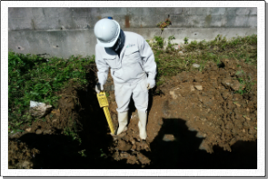 戦時中に使用された爆弾の中には、地中深くに埋まったままのものも存在するため、基礎杭を打設するなど地中深くまで地盤を掘削する必要がある場合は、鉛直磁気探査を行います。