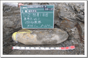 磁気探査で発見された不発弾(250kg爆弾) 磁気探査で発見された不発弾(250kg爆弾)